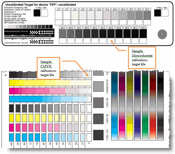 2. NOTE: Dot values for a Monochrome calibration target are different from a CMYK calibration target.