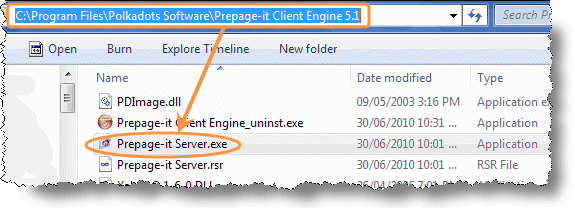 2. Now navigate to the folder C:\Program Files\Polkadots Software\Prepage-it Client Engine.