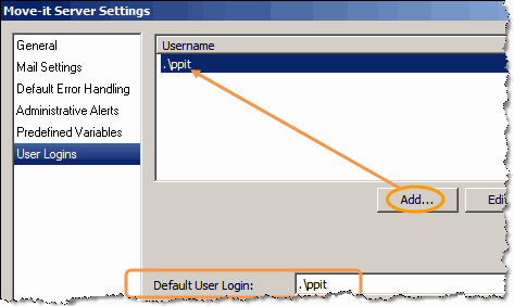 2. Add the administrator account that you created in step 1 into the Move-it Server Settings.