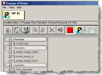 1. Make sure the RIP is started. If it isn't, then launch it from the PrePage-it Viewer by clicking the Start RIP button in the toolbar. When the RIP is launched, the PrePage-it Viewer looks like this: